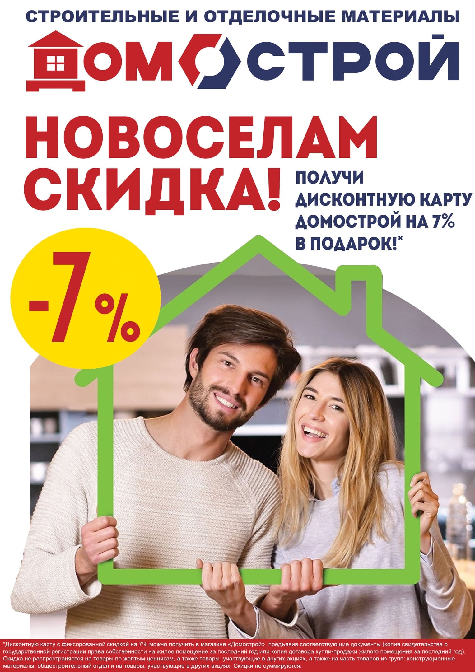 До 7% по карте лояльности, до 10% пенсионерам, 7% новоселам (скидки не суммируются)